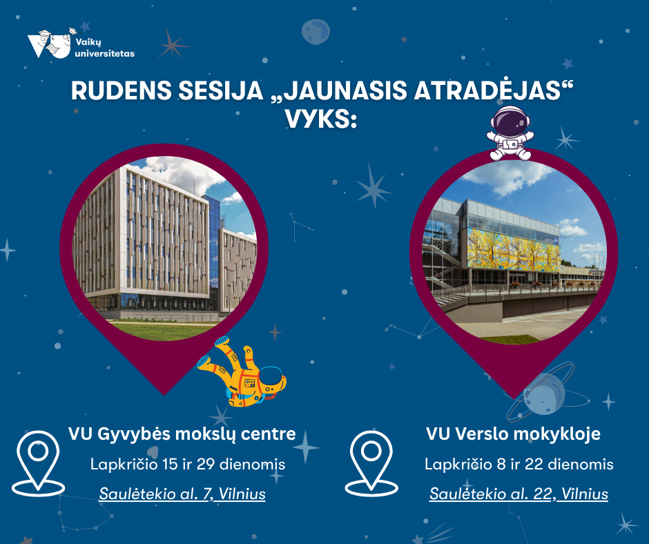 Laikas: Užsiėmimai vyksta šeštadieniais 10:00–12:00